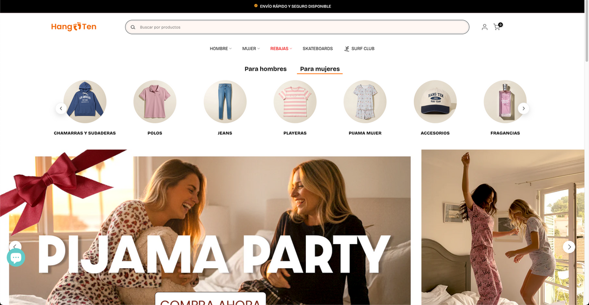 Hang Ten es una marca internacional de ropa casual, reconocida por su estilo relajado inspirado en la cultura surf y beach lifestyle.
